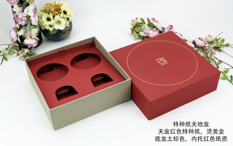 1. 材質:上盒用紅(hóng)色特種紙,紙張特别有手感燙金香槟金色下盒爲特黃色珠光紙,盒子規(guī)定的内托是紙質,盒型爲天地盒整款包裝盒都是手工制作