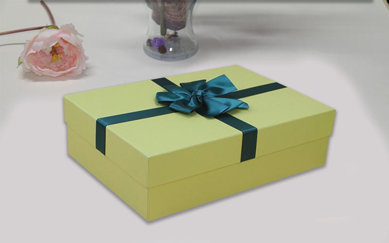 1.材質:盒子面紙特種紙空白有紋路的紙張,裱1500G雙灰闆底盒跟天盒一樣的材質做工,盒子表面年各種顔色絲帶。此款服裝包裝盒爲各種通用款式機器批量制作。