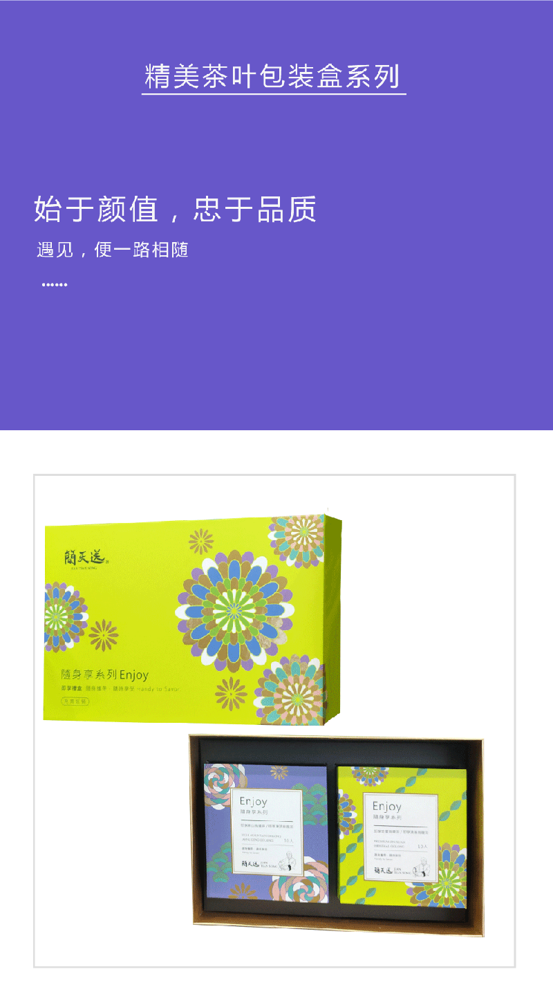 香港行家茶寫協會随身享系列茶葉包裝盒 ,有大師級設計爲其專門設計瞭(le)一個系列的包裝,由專業的包裝盒印刷廠家博霖印刷負責生産(chǎn)。該系列一共有四款,分别對應瞭(le)四種不同的專色,整體效果非常的好看高檔!