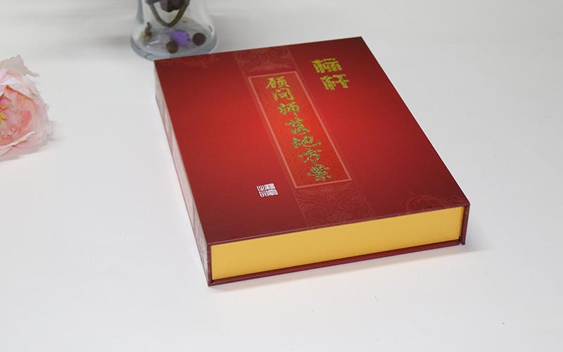 1.材質 :封面用157G銅版紙單面彩色印刷,盒子封面燙彩色金底圖和圖片UV光油,裱1300G雙灰闆,内托爲特種紙裱350G單粉卡做成凹槽,盒型爲翻蓋盒整款盒子都是手工制作