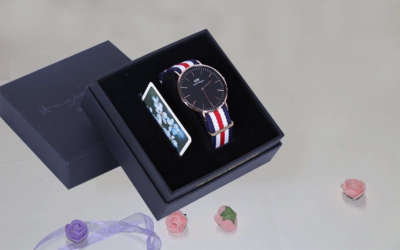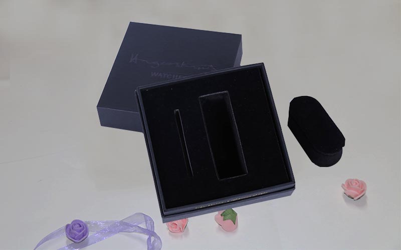 1.手表包裝盒定制-材質:盒子表面採用高仿皮質特種紙裱1800G雙面白雙灰闆,表面燙金或者是擊凸文字LOGO,盒内内托採用EVA和珍珠棉這是最常見的,需要更高端的内托可以用植絨或者是絨布都可以,盒型爲翻蓋盒和抽屜盒,手表比較高檔盒子制作精細