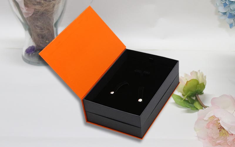 1.詳情:盒子面紙採用157G銅版紙專色印刷,單面啞膜裱1300G雙灰闆,2層内盒180G黑色特種紙裱1300G雙灰闆,内托用黑色植絨EVA,放好産品固定,整款盒子結構特殊手工制作。